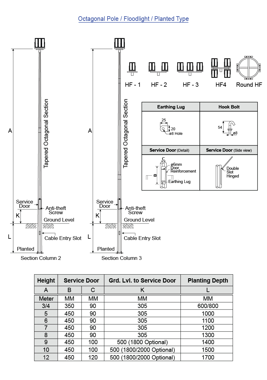 Octagonal Pole - Floodlight